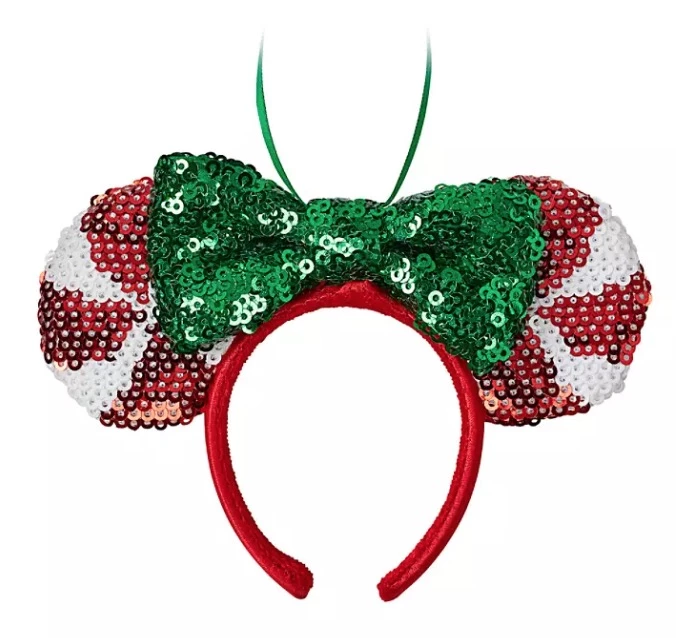 Add a novel twist to your holiday dΓ©cor with thisΒ Minnie Mouse Ear Headband Ornament. The miniature version of the classic sequin designΒ features peppermint twist ears and green bow.